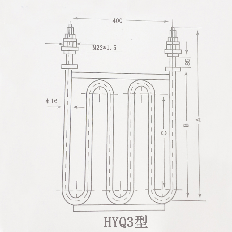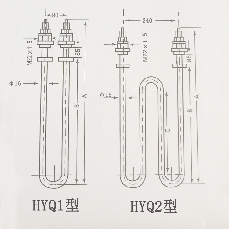 HYQ型空氣用管狀電熱元件管材為10號(hào)鋼。