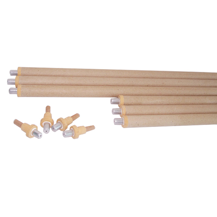 熱電效應,利用熱電偶兩端所產生的溫差電熱測量鋼水及高熔融金屬溫度。快速熱電偶的結構,它主要由測溫偶頭與大紙管構成。偶頭主要有正負偶絲焊接在補償導線上,補償導線穿嵌在支架上,支架外套有小紙管,偶絲以石英支撐和保護。*外裝有防渣帽,全部零組件集中裝入泥頭中并以耐火填充劑粘合成一整體,而不可拆卸,故為一次性使用。