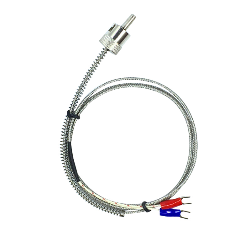 卡簧熱電偶帶有軟性延長導(dǎo)線,可以自由彎曲,具有熱響應(yīng)時間小,使用方便等特點,適用于塑料擠 出機、輕紡、食品等工業(yè)。
